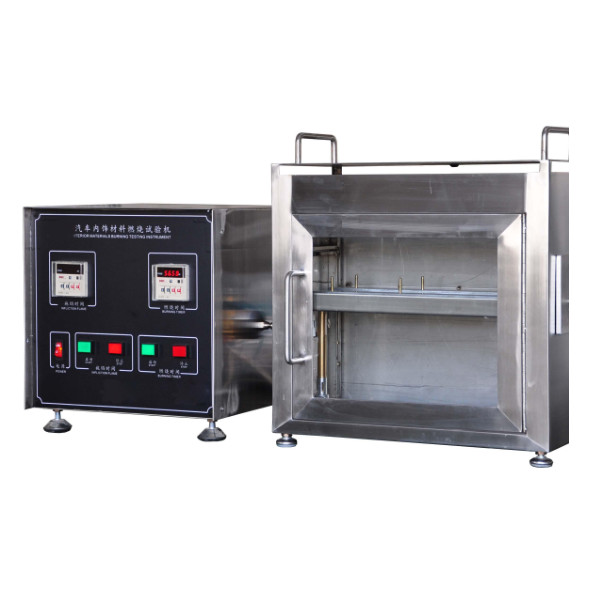 This machine complies with the test methods of GB8410, TL1010, TSM0500G and American Standard FMVSS571.302, DIN7520 "Combustion characteristics of automotive interior materials". Clamp the sample horizontally on the U-shaped bracket, and ignite the free end of the sample with a flame at a specified height in the combustion box for 15 seconds. to determine whether the flame on the sample is extinguished, as well as the burning distance of the sample and the time it takes to burn the distance . Interior materials include single materials or laminated composite materials used in automotive interior parts, such as seat cushions, seat backs, seat covers, seat belts, headrests, armrests, movable folding roofs, all decorative linings, Dashboard, glove box, indoor cargo shelf, or rear window sill, curtains, floor coverings, etc. And it has the function of high automatic control system, automatic ignition, automatic air supply, automatic timing, manual end of the test and other functions, convenient observation and recording, stable and reliable use.